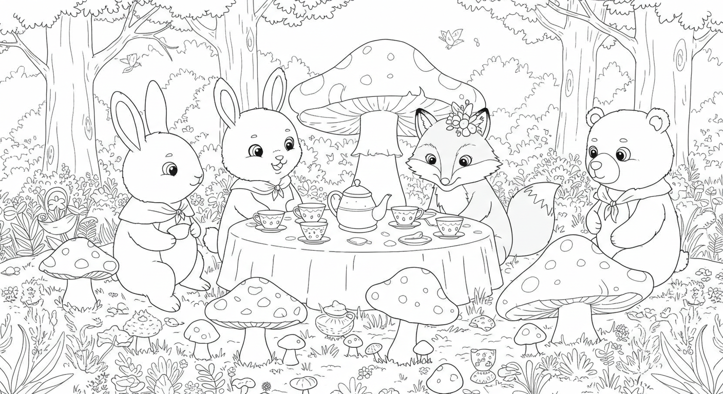 3. 숲 속 친구들의 버섯 집 티타임 🍄☕🐿️
